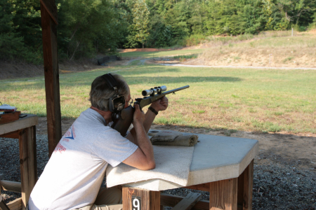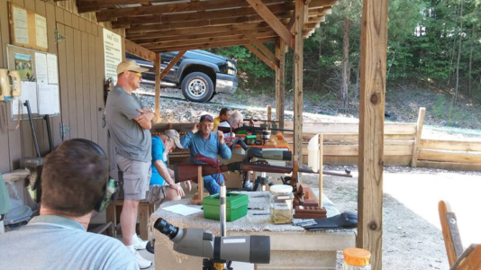 Our targets are paper and steel, all at 200-yards. We shoot from the bench using “bench sticks” for a rest. The bench sticks are usually one board with an additional two more boards that form and are capable of a scissoring action to adjust to the correct height. The scissor boards are usually 2″ X 1″. We fire two strings of 15 rounds each. We then rotate the shooters after each string until all have fired the two relays. There is a $15 fee to shoot in the match.